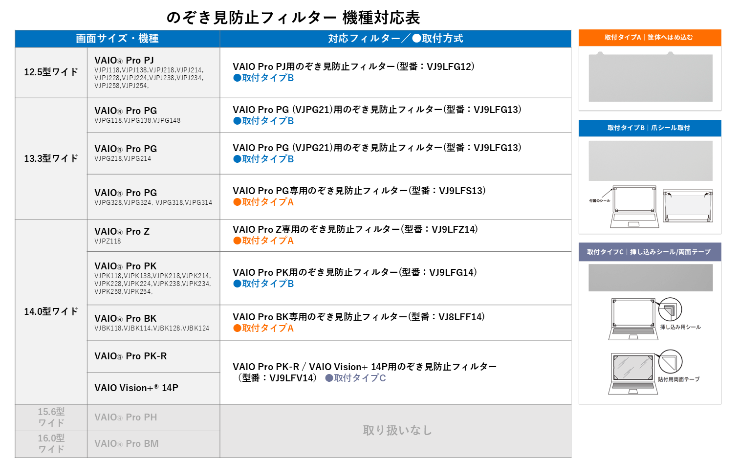 VAIO Pro PG (VJPG21) 専用のぞき見防止フィルター